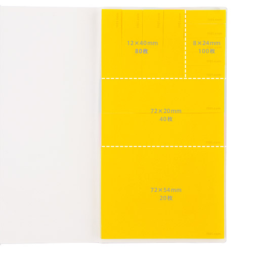 | 仕 様 | ・各付箋のサイズと枚数 8×24ミリ:100枚 12×40ミリ:80枚 72×20ミリ:40枚 72×54ミリ:20枚 |