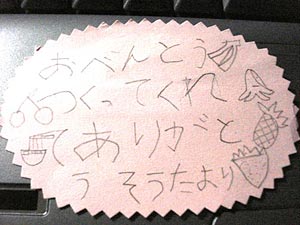 空っぽのお弁当箱にカードがついていた。