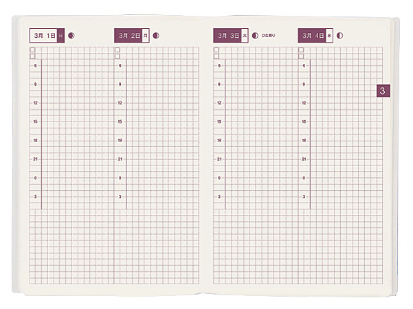 | 仕 様 | ・2日で1ページ(2009年1月1から2009年3月31日まで) ・2009年1月〜3月の月間カレンダー(月曜はじまり)つき ・メモ用3ページ ・3.45ミリ方眼 |