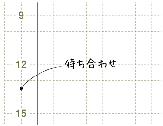 2008年版まで入っていた、 時間軸の数字の中心を通るタテの破線。 2009年版の改訂時、数字がより見やすくなるように、 その破線を取っていました。 すっきりと見やすくはなったのですが…… 「数字がない時間帯の予定は、時間軸のタテの破線に 点を打って、そこから線を引き出して書いてました。 そのタテ線がなくなって、書きづらいんです」 そんなご意見をいただきました。