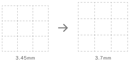 それまで4ミリ方眼だった方眼サイズを、 3.45ミリに変更した2009年。 手帳によりたくさんの文字を書けるように、 グラフィックデザイナーの佐藤卓さんが 試行錯誤して導いた方眼サイズでした。 この新しい方眼サイズの使い勝手をうかがった 手帳アンケートの回答は、 「ちょうどよい」を含む肯定的な回答が、 「小さいと感じた」を含む否定的な回答を わずかに上回りながらも、圧倒的な支持を得たとは言えず、 次年度の方眼サイズについて、検討を重ねました。 佐藤卓さんと糸井重里が聞き手となって、 ユーザーの方の生の声をうかがう「方眼座談会」を経て、 辿りついた結論は、4ミリでもなく、3.45ミリでもない、 「3.7ミリ方眼」です。