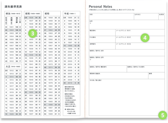 1日ページ 年間カレンダー 年間インデックス 月間カレンダー おまけページ カバー