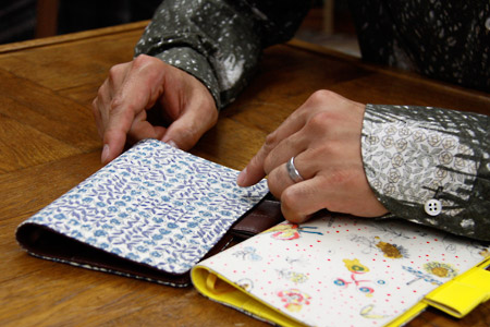 | ーー | 「ローズ・ガーデン」といったイメージだったのが 森の茂みの野バラといった印象にすっかり変わって、 とてもおもしろいです。 では最後に。 手帳カバーになったものを ご覧になって、いかがですか。 |