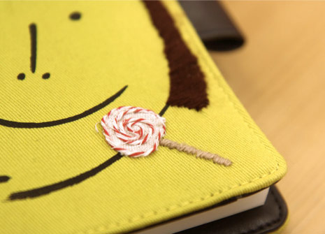 *キャンディは、白い生地に2色撚りの毛糸を縫い付けて表現しました。