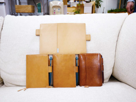 そう、この写真が示すのは、「ヌメ革カバーの経年変化」である。