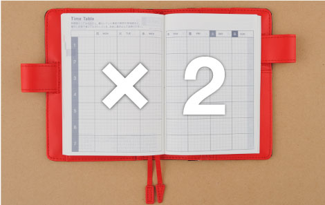 2012年の1月はじまり版から、 1つのみの収録になった「Time Table(時間割り)」。 「自分の習いごとの予定と、子どもの学校の 時間割りを両方書きたい」という声や、 「講義の時間割りを前期と後期で分けたい」 という声が、その後よせられました。 なるほど、そんな使い方もあるんですね。 それなら、というわけで 4月はじまり版では2つに戻しました。 社会人の方も、スケジュールの管理に使ったり 春からはじまるテレビ番組を書いたりと、 便利にたのしく使ってくださいね。