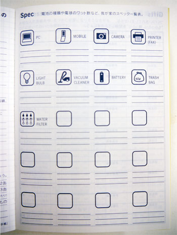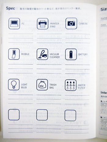 ここに携帯電話、カメラ、プリンタなどの型番を控えておけば、