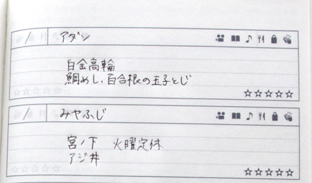 手帳の巻末についている「Favorites」のページ、