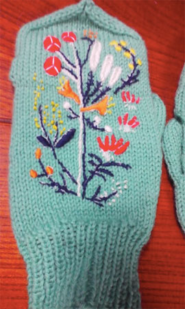 母にみつまた手袋、姉に刺繍のミトン、妹に黒白星ミトン。