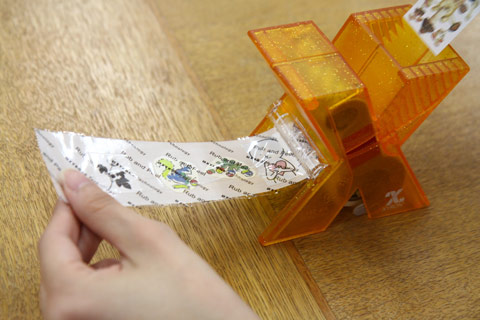 シールの台紙をひっぱります。