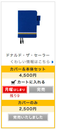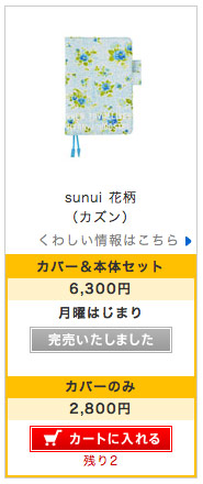 「日曜はじまり」と「カバーのみ」の販売分は売り切れており、