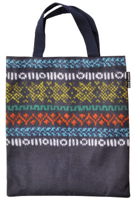 ポリエステル生地に、三國万里子さんの編んだニット柄を