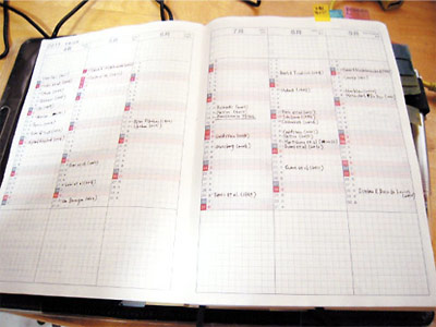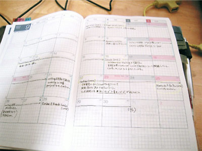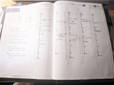 週間ダイアリーには、勉強時間や調べ物をした時間など、