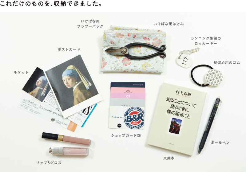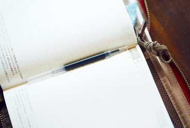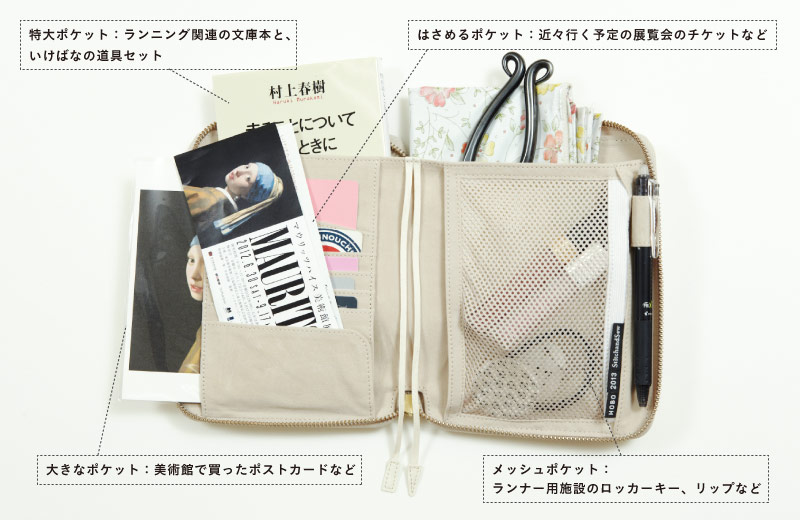 「ジッパーズには、2つの趣味にまつわる、 出先で必要なものをつめ込みました。 ほかにも、山登りなど興味があることが多いので、 これからも入れるものが増えていくかもしれません」 なるほど、趣味が増えるごとに、 ジッパーズの中身も増えていくのって、たのしそう! ※手帳本体を装着せず、ジッパーズを ポーチとして使った場合の使用例です。