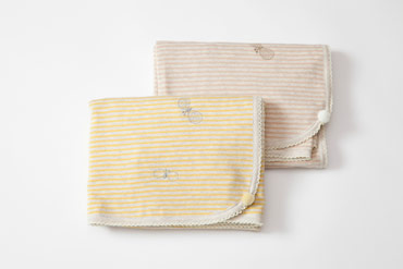 〈ミナペルホネン〉のちょうちょ柄のおくるみ。
