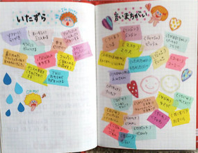 書く、描く、貼りつける、はさみ込む。