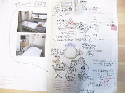 絵を描いたり、写真やチケット、箸袋、レシート、