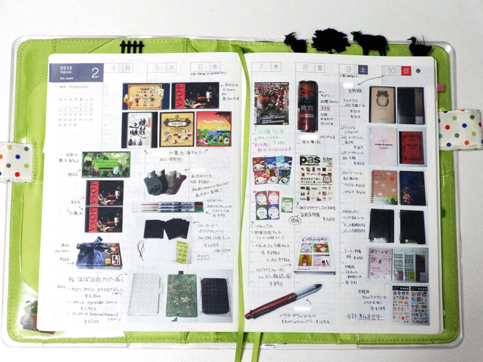 週間ダイアリーに買った物の写真をシールにして
