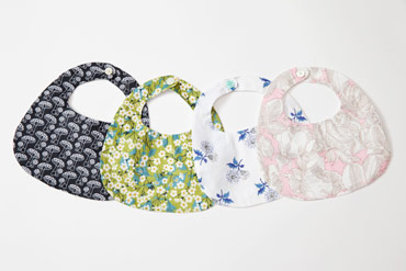 リバティ社のファブリックを使った、 生後3カ月までの、とくべつなビブ。  ビブ/MAKIE