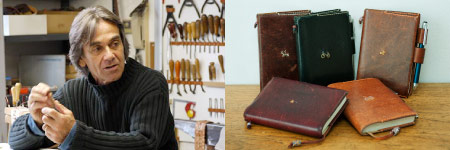 イタリアの革職人、アンリ・ベグランさんの工房で