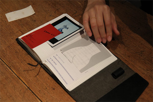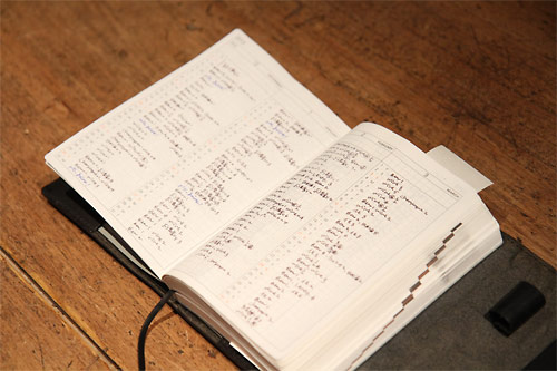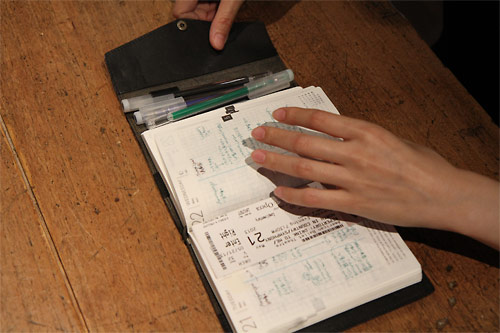 | ほぼ日 | はい、ぼくらも発表がたのしみです。 ‥‥ではさっそく、今お使いの手帳を 見せていただいてもいいでしょうか。 |