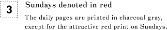 ![[3] Sundays denoted in red The daily pages are printed in charcoal gray, except for the attractive red print on Sundays.](images_e/string_mc_list_03.gif)