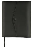 | 革のくるみボタンでパチっととめる三つ折りタイプの革カバーです。黒のカバーってどこか秘密な感じがあります。三つ折りのデザインがそうさせるのか、なんだか色気のあるカバーです。(担当T) |