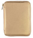 | 去年のジッパーズエナメルに続くような、上品な印象のゴールドのカバー。「ゴールドのジッパーズを加えたい」と言ったのは、実は私(男性)です。甘すぎず、男性にも持ちやすい雰囲気にしあげました。(担当S) |