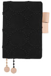 | 今年6年目になる黒革カバー。「今年はTSブラックもリニューアルしよう!」とデザイナーの佐藤卓さんと相談をしたのですが、考え抜いた末に選ばれたのはこれまでと同じ革でした。やっぱり、それだけいい風合いの革なんです。(担当S) |