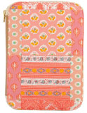 | 南仏の老舗生地メーカー「SOULEIADO」の定番柄を集め、パッチワークのようなプリント柄です。違う配色だったものを、カズンのジッパーズに合うように、かわいいピンクの生地に仕上げました。(担当S) |