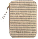 | 男性向けのカバーとして作りましたが、女子にも「あえて男の子の持ち物を持つ」気分で使ってほしいカバーです。粗目の生地にすることで、カジュアル感をプラスしています。(担当T) |