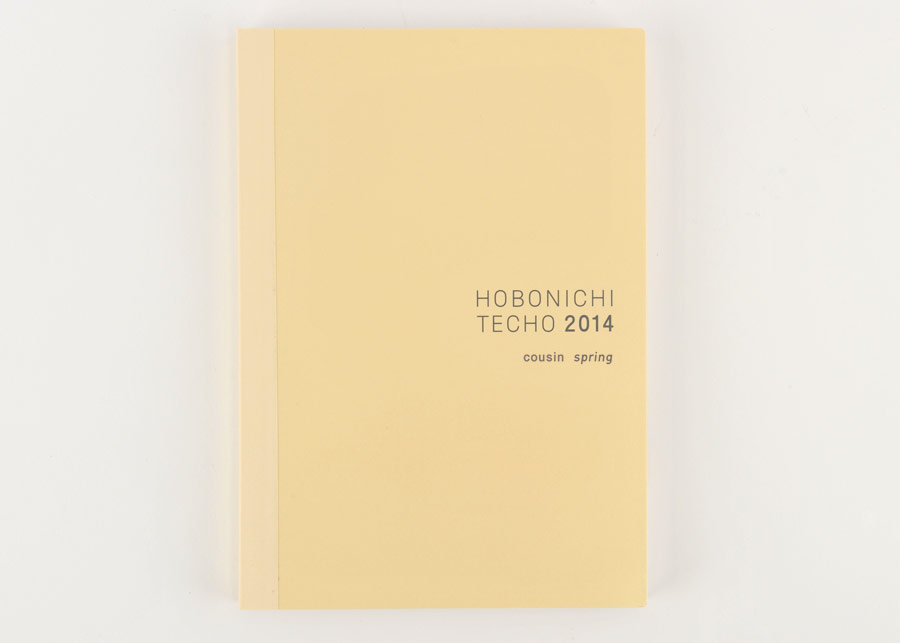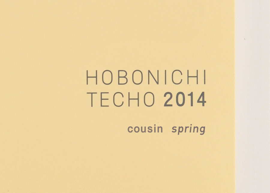 表紙の中央右には、グレーで 「HOBONICHI TECHO 2014 cousin spring」 と印字しました。