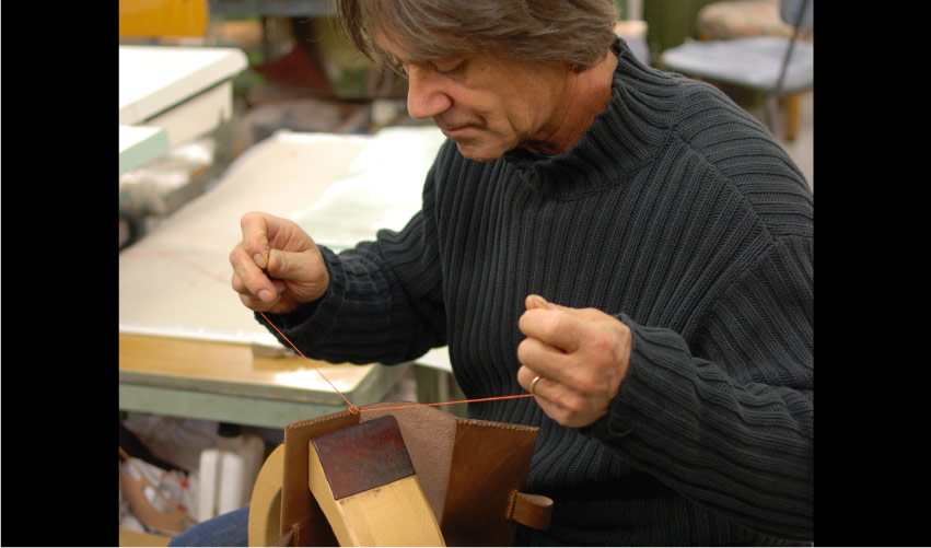 ろうびきした麻糸。