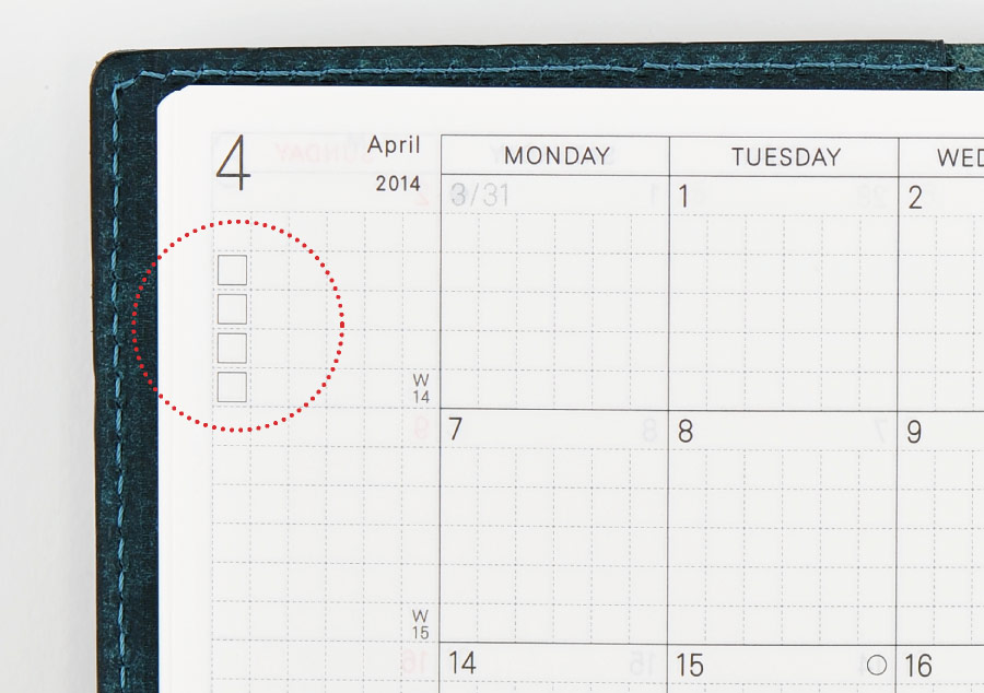 Each monthly calendar includes four checkboxes for keeping track of things to do in the month ahead. If four boxes aren’t enough, there’s plenty of room to add more.