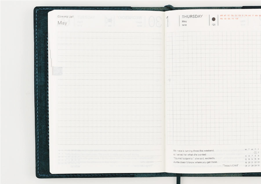 The planner includes 16 pages in the back for capturing random thoughts, sketching or storing items of interest. One of the major changes in the design of the 2014 planner is from grid paper to dotted paper in these pages.