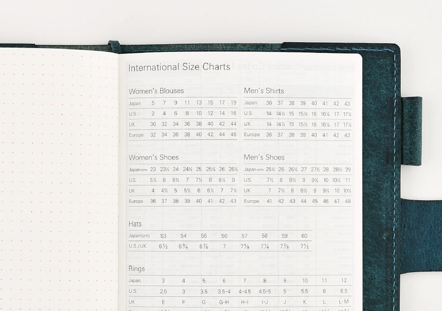Comparison charts for different countries are included for items such as clothing, shoes and rings. Since clothing sizes and units are subject to change depending on the maker, this should only be used as a rough guide when shopping overseas.