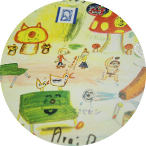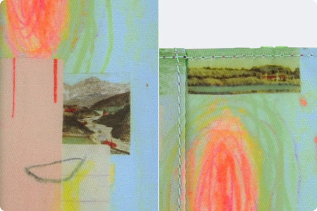 I used all kinds of art materials when I created this design, but I can't explain very well why in particular I used certain colors in certain spots. (laughs) A lot of it I painted, drew, and pasted without any real thoughts in mind. So I was surprised when I looked back and saw that I'd drawn a candle in this spot.