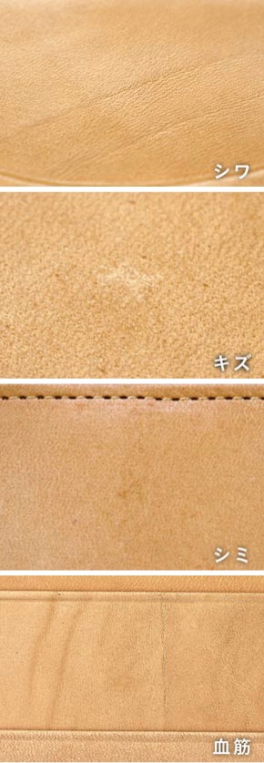 - 革がもともと持っているシワや傷などが