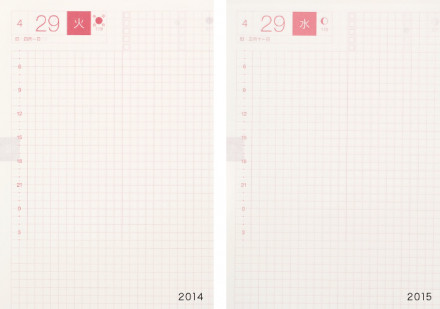 In order to make the pages easier to write on and to read, the design this year has been toned down with features such as thinner borders around the monthly calendars and all background color removed from the yearly index pages.