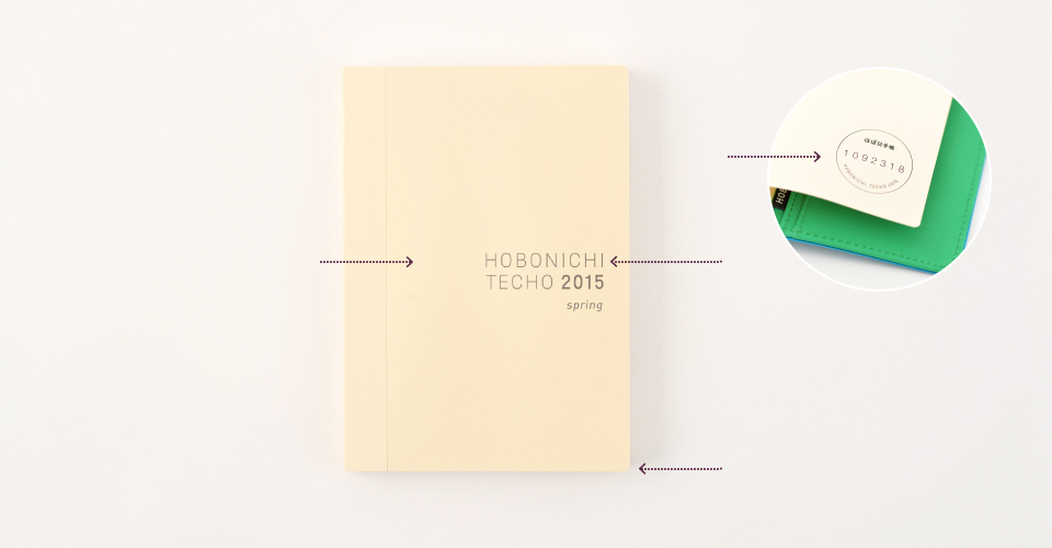 The front cover features the label "HOBONICHI TECHO 2015 spring," printed in gray letters if the book's weekly calendars start on Monday and red if they start on Sunday.