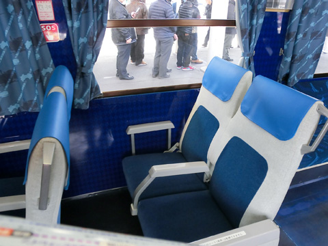 見たかったー。 わっ。車内の、この椅子も 0系で使われていたフレームだそうです。 |
