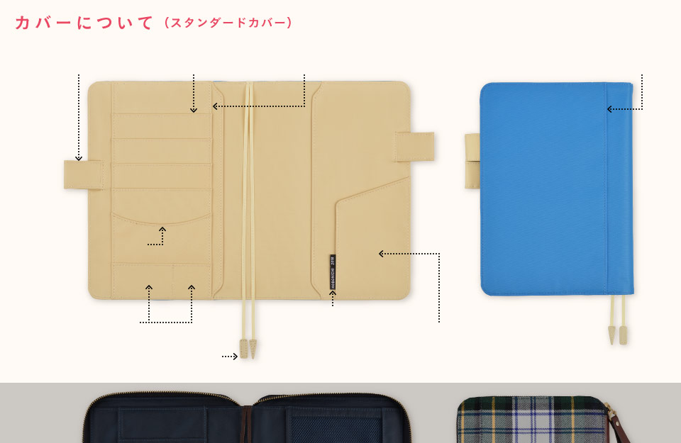 ほぼ日手帳の印である「HOBONICHI」のロゴが、 それぞれのカバーにタグとしてついています。