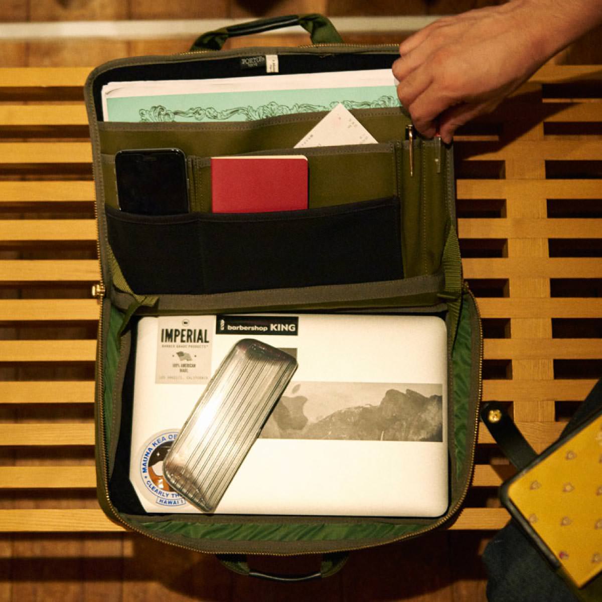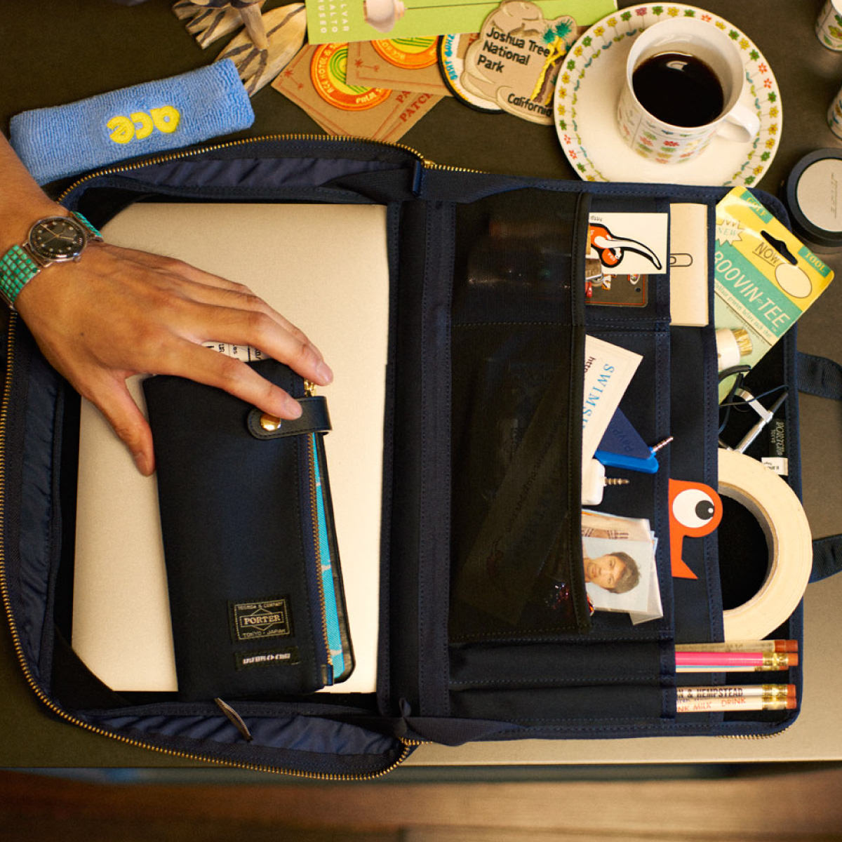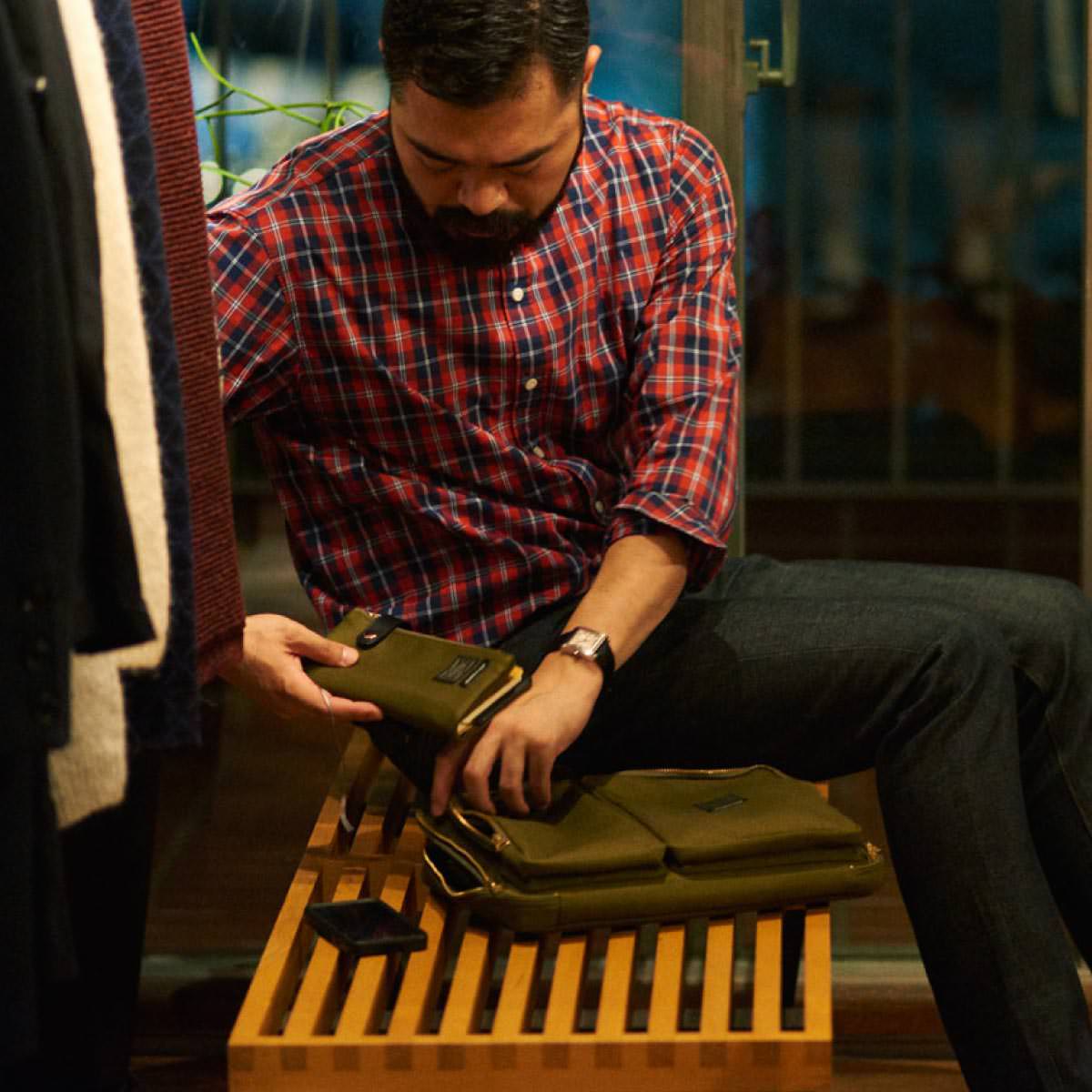 LITTLE NAP COFFEE STAND 濱田大介さん/代々木公園のそばにあるLITTLE NAP COFFEE STANDのオーナーバリスタの濱田さん。コーヒー豆の特質やその日のコンディションに合わせて、エスプレッソマシンを調整するのも濱田さんの仕事。豆の産地をメモするノートに工具類が収納できるポケットが付いたツールポケットは、とても使い勝手が良さそう。