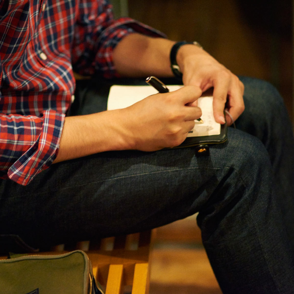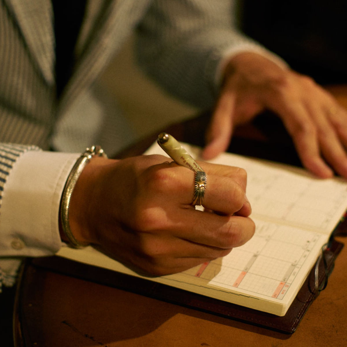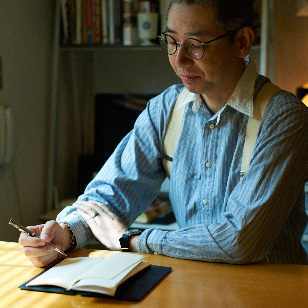 Swimsuit Department 郷古隆洋さん/世界各地の蚤の市やオークションで買い集めた民芸品やオブジェクトを揃えるSwimsuit Departmentのオーナー郷古さん。年に数回ある買い付けでは、すぐにレシートが膨大な量になってしまうため、こまめに品名と値段を手帳に控えているそう。郷古さんにとって、手帳とは旅のパートナーでもあり、仕事のパートナーでもあるのだ。