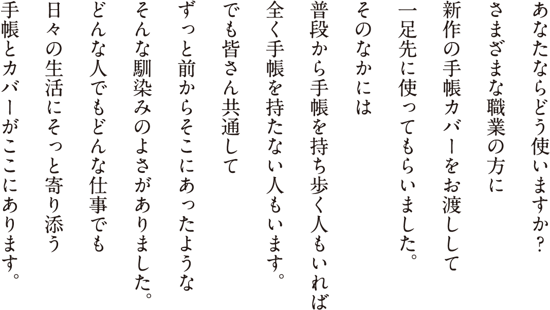 編集者 河田紗弥さん/ファッション誌GINZAの編集部に所属する河田さん。ほぼ日手帳の初期からの愛用者で、ここ数年はソニア パークさんが監修するHobonichi Plannerがお気に入りだとか。WEEKSについては「クラッチバッグやミニポシェットにサクっと入れて、出掛けられるのがいいですね」と。さて来年の手帳はどっちにしようか?