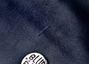 「BLUE BLUE」の刻印入りのボタンには
