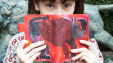 真っ赤な絵の具の塗りあとが鮮やかです。