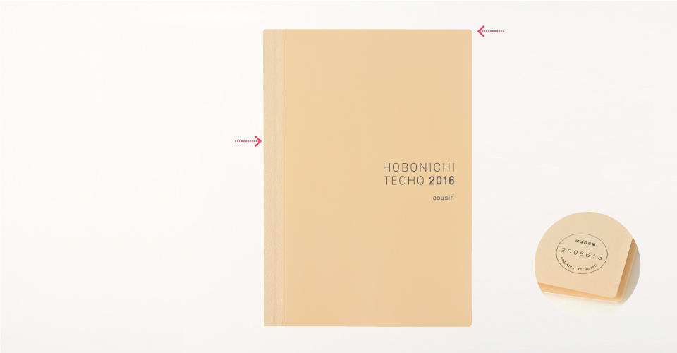 The front of the techo book is made of strong card stock with a soft ivory hue, and features the label "HOBONICHI TECHO 2016 cousin spring,” printed in gray letters.