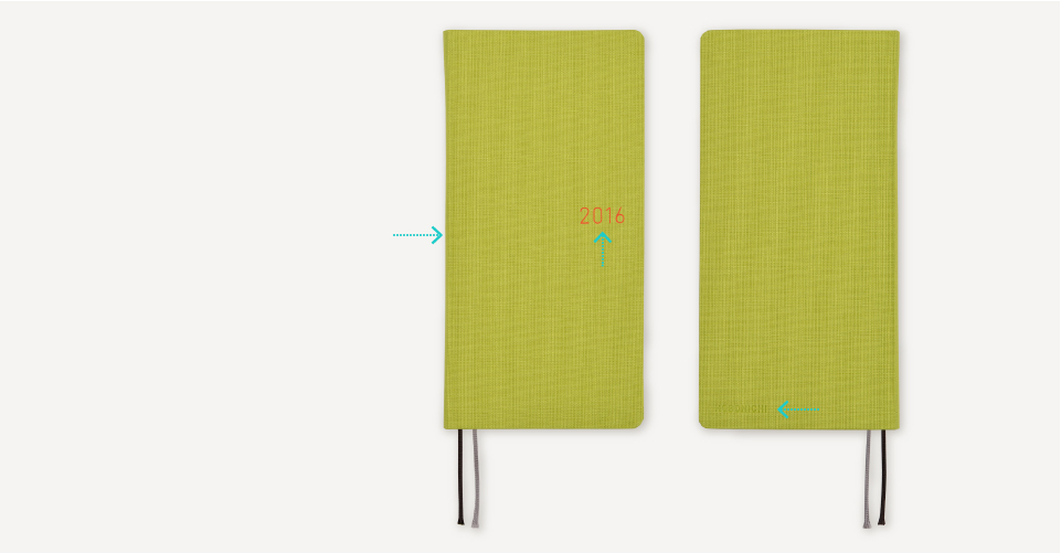 The spine of the WEEKS book is embossed with 2016 for easy reference when storing the planner in a bookshelf.