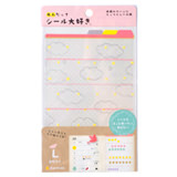 "M" is about the size of half an A6 page, and "L" is about the size of a whole A6 page. Each set comes with 3 uniquely patterned sheets (Clouds, Raindrops, and Ropes), providing you with a cute backdrop to store your stickers.